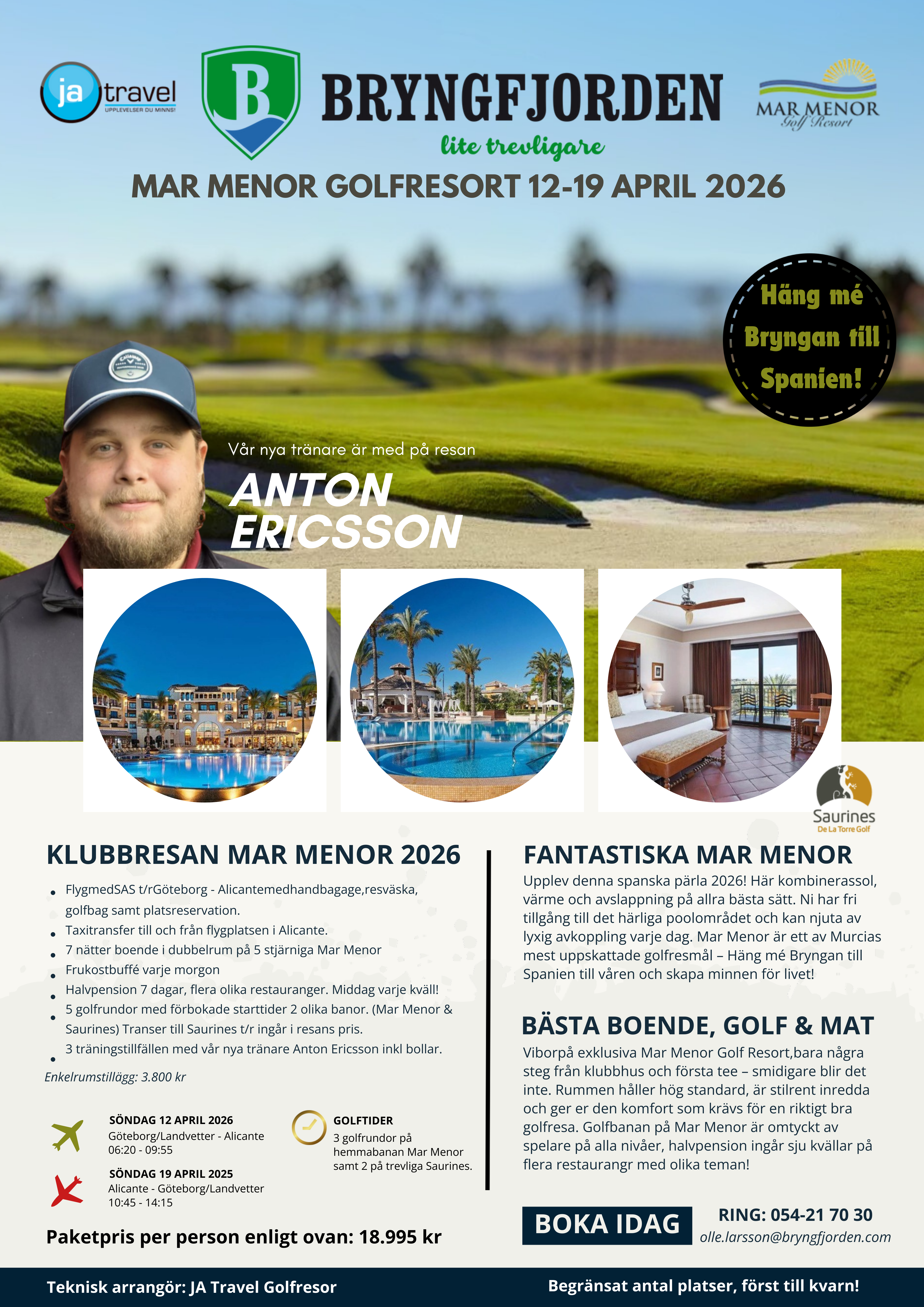 Nu släpper vi nästa stora höjdpunkt – klubbresan till Mar Menor Golf Resort i Spanien 12–19 april 2026.